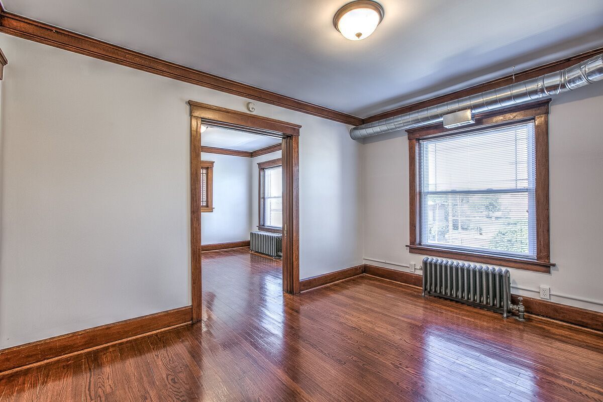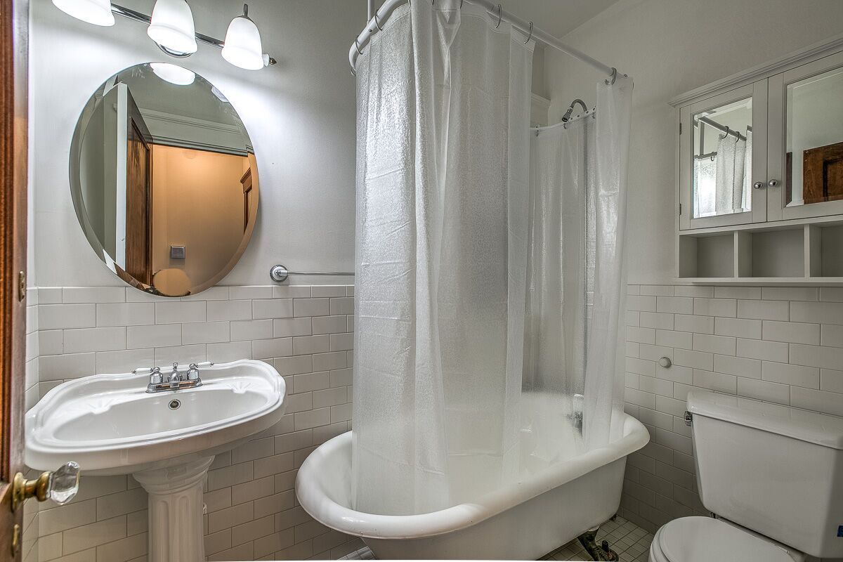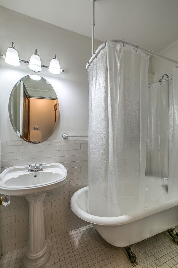 Huge walk-out balcony, new windows, original claw-foot tub, hardwood floors pedestal sink, central air/heat, on-site free laundry and free off-street parking. Controlled access allows you to let visitors in with your cell phone.