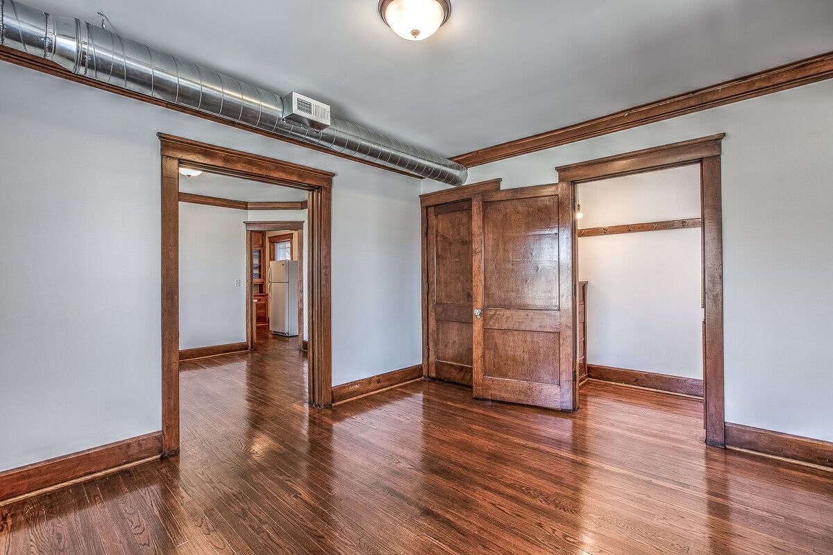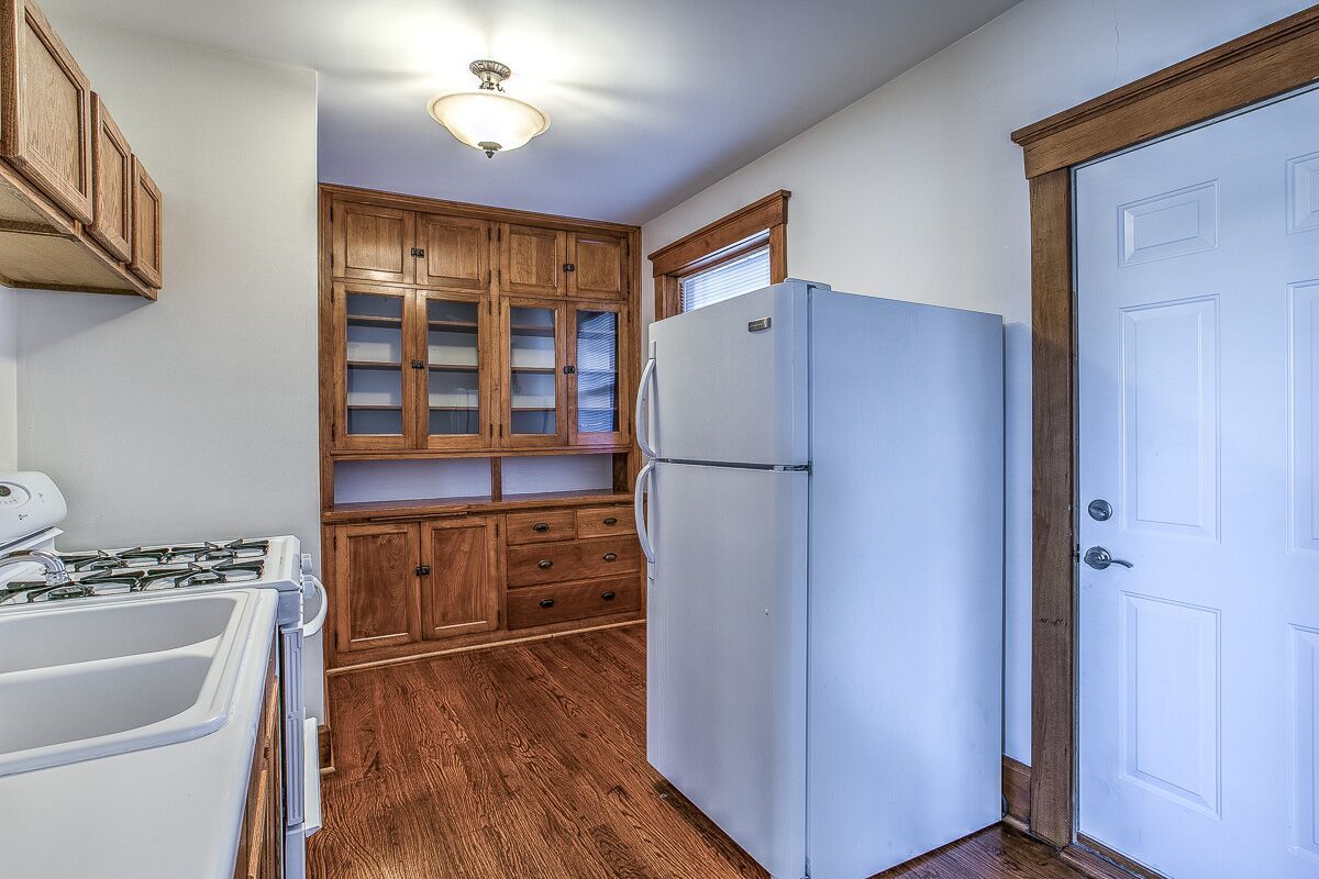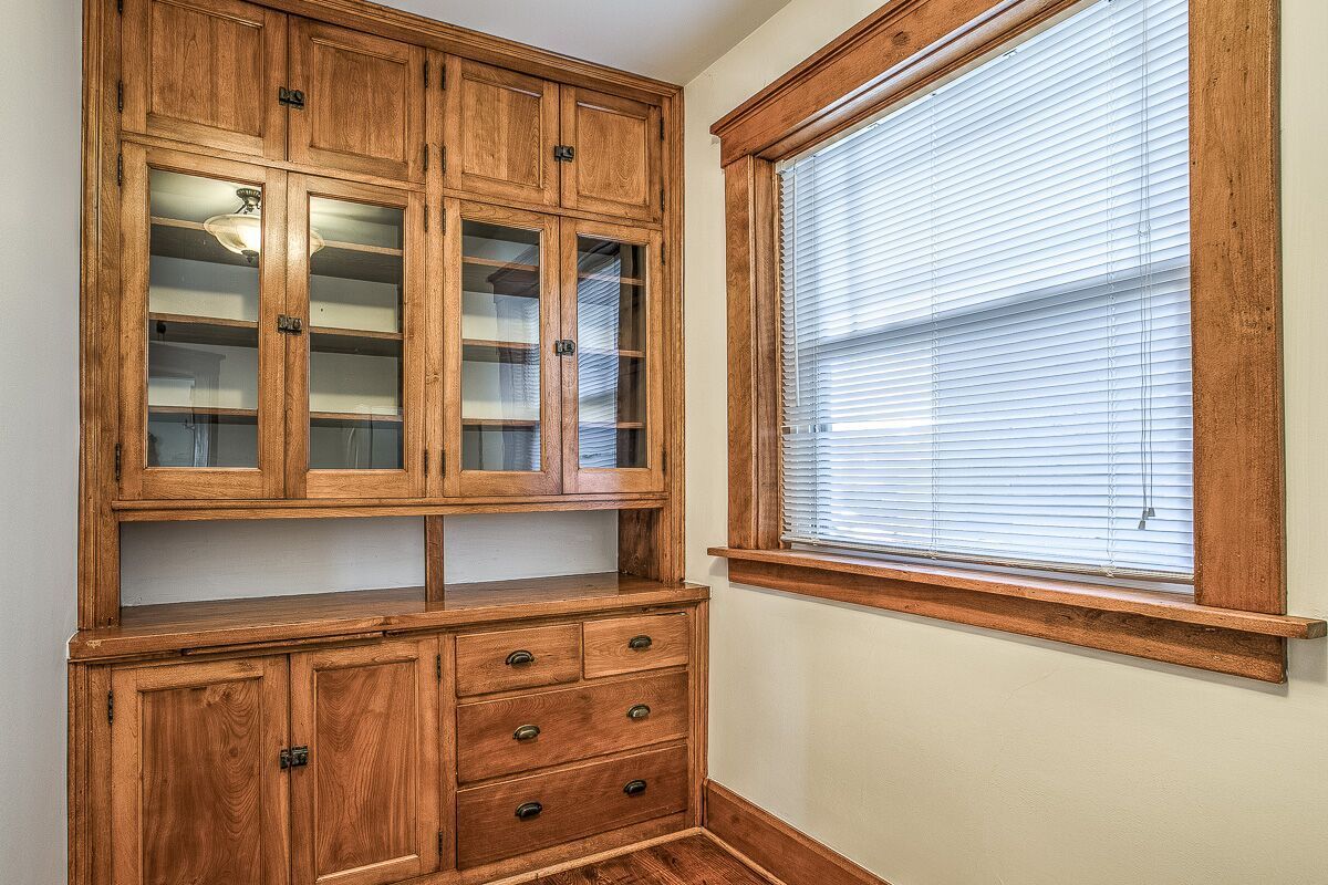 Original crown molding, built in cabinets, pocket door, even the original (no longer functioning) gas light!