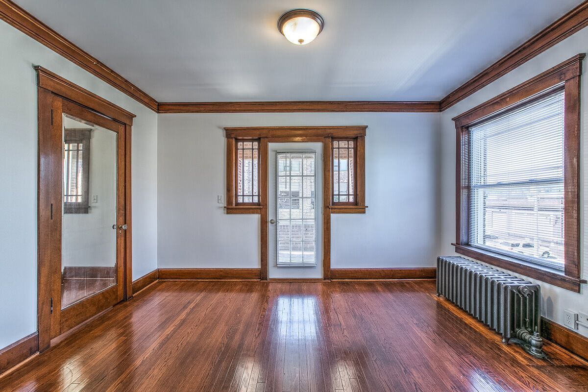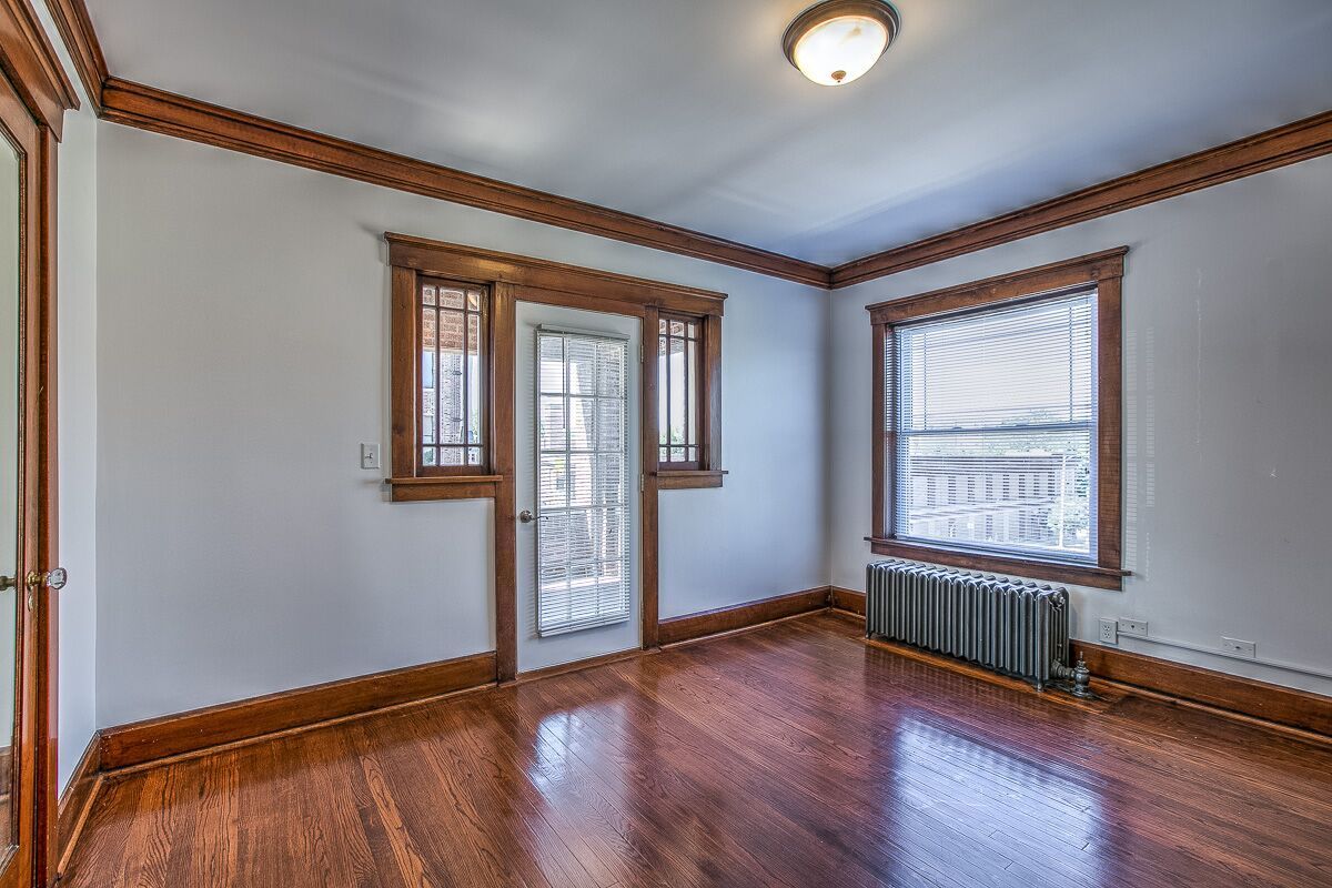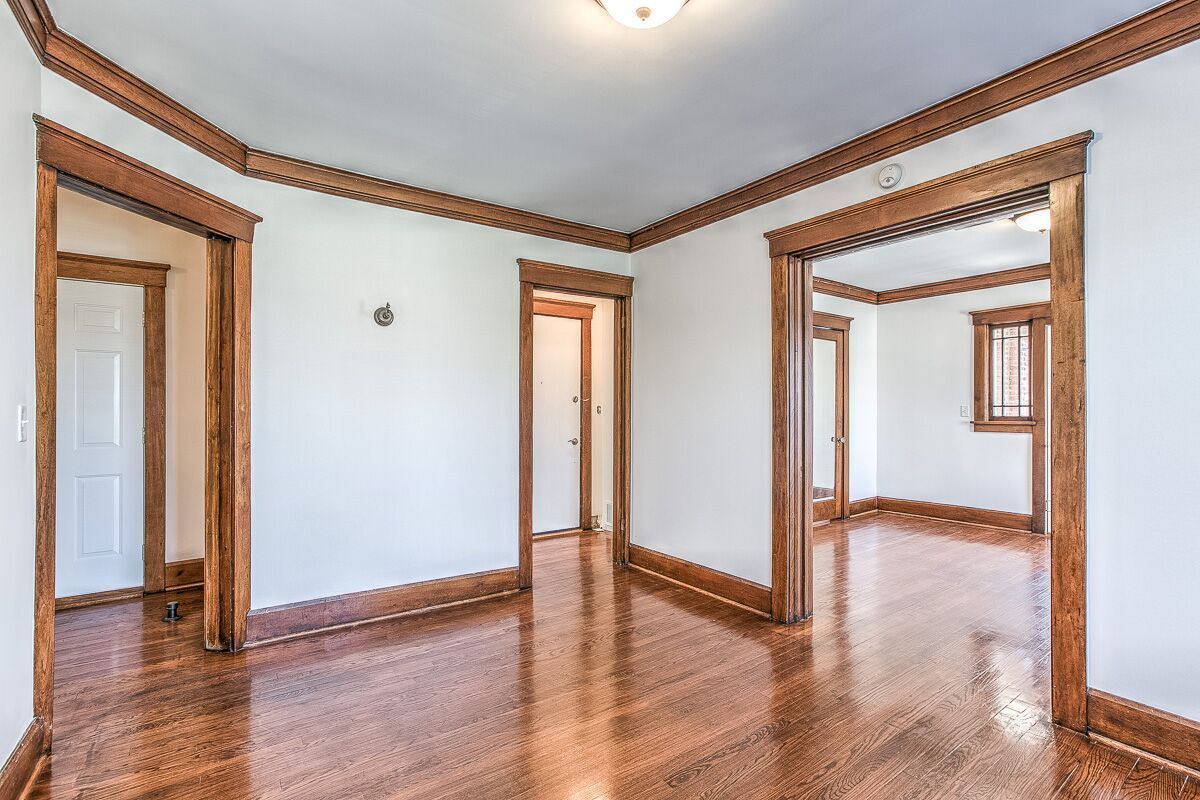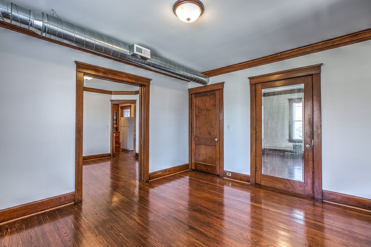 Original crown molding, built in cabinets, pocket door, even the original (no longer functioning) gas light!